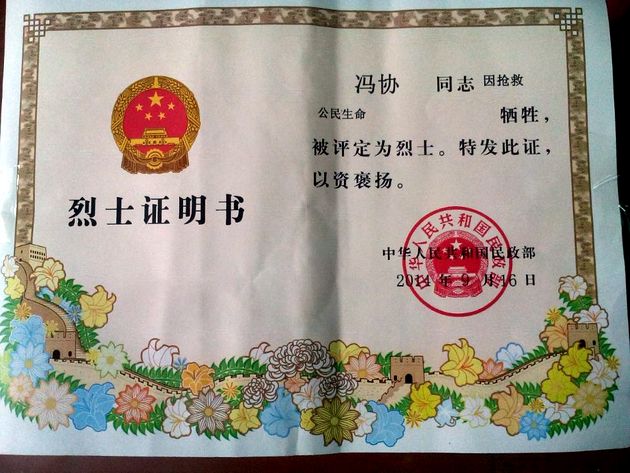 经河南省新野县民政局、河南省民政厅呈报,国家民政部批准,我院会计系2010届校友、河南省桐柏县程湾乡中心小学特岗教师冯协,被追认为烈士。民政部已于2014年9月16日,为冯协家属颁发了“烈士证明书”。 “烈士证明书”上称:“冯协同志因抢救公民生命牺牲,被评定为烈士。特发此证,以资褒扬。”