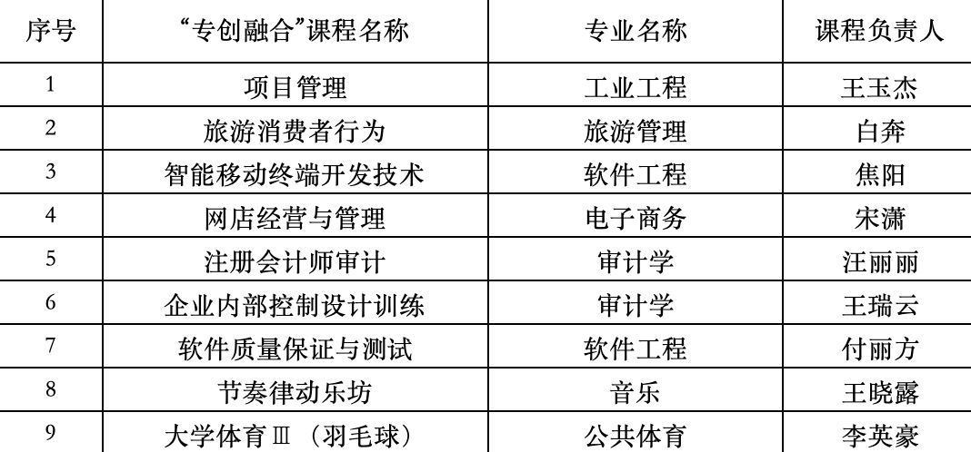 根据《郑州升达经贸管理学院“专创融合”特色示范课程建设方案》(升达〔2024〕168号)和《郑州升达经贸管理学院“专创融合”特色示范课程建设管理办法》(升达〔2024〕167号)文件精神,我校组织了2025年第三批校级“专创融合”特色示范课程申报和第二批已立项课程的进展工作汇报评选工作,经各学院申报,专家组评审,拟推荐《项目管理》等9门课程立项为我校第三批“专创融合”特色示范课程,现予以公示,具体见下表: