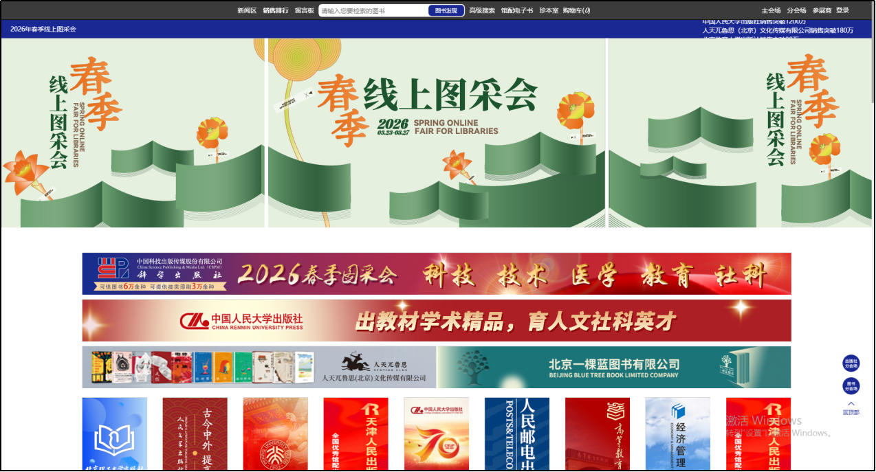 1、主会场:主要展示重点出版社书目,直接点击出版社名称即可进入选书界面。