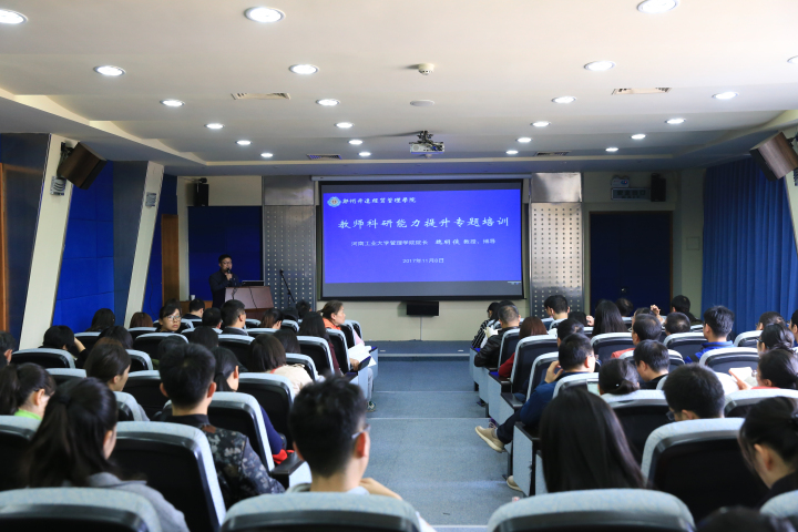 11月8日下午,河南工业大学管理学院院长魏明侠教授应邀莅校进行学术交流,在图书馆团体视听室为学校教师作“科研能力提升培训——哲社科研项目选题与申报指导”专题培训。全校十二个教学院部100余名科研骨干和年轻教师代表参加培训,科研处处长杨存博主持报告会。