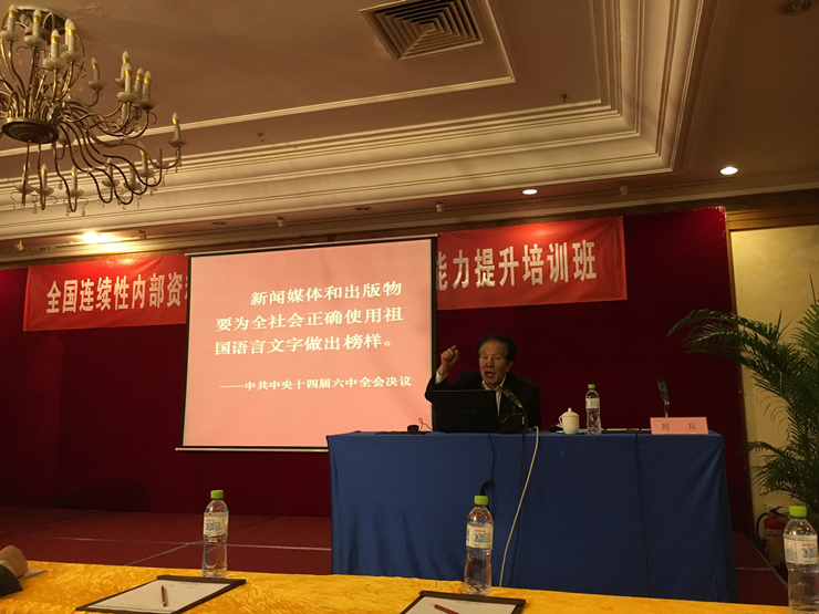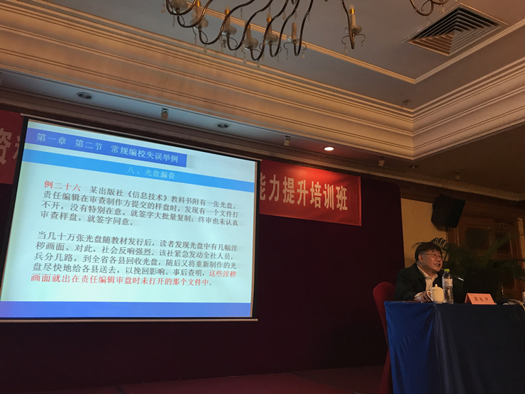 会议特邀原人民教育出版社审读室主任谭桂声编审、国家语委语言文字应用研究所厉兵研究员、北京印刷学院温哲仙教授等多位专家作了主题学术讲座。谭桂声老师出版经验丰富,从我国的政治体制、国家方针政策、领土主权等方面讲述了出版物中的政治性敏感词汇,通过案例生动详细地讲解了出版物涉及的民族、宗教问题,强调民族、宗教无小事,让我们受益匪浅。厉兵老师从语言文字规范的角度,从2011-2015年出台的八个重要规范入手,为大家讲解了文字、词语、语法、标点、数字、计量单位、知识等语言文字工作规范需要注意的十个方面,对今后编辑工作的规范性提出了更进一步的要求。温哲仙教授则是根据参加培训的单位性质,解读了《内部资料性出版物管理办法》,又从版面形式对编校质量的影响给予了专业的指导。