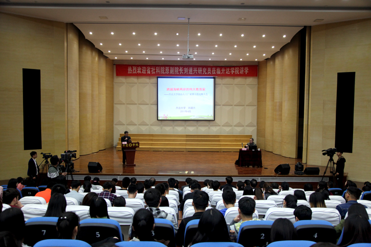 4月27日上午,学院邀请河南省社科院原副院长刘道兴研究员在音乐厅作关于《跨越海峡两岸的伟大教育家——王广亚》专题讲座。出席报告会的学院领导有:院长郭爱先、院党委书记张德伟、常务副院长崔慕岳,副院长张金安、副院长吴益民。有关部门主管,教职员和学生代表500人参加报告会。报告会由常务副院长崔慕岳主持。