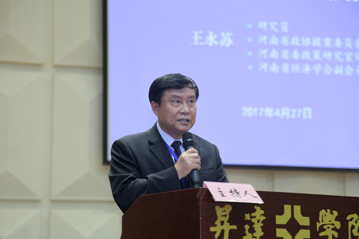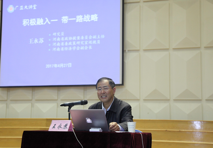 会上,吴益民副院长对主讲人王永苏研究员做简要介绍。王永苏任河南省政协提案委员会副主任,河南省十三五规划专家委员会主任委员,曾任河南省人民政府发展研究中心主任,长期从事河南省发展战略研究,贡献颇大。吴院长对王主任莅临广亚大讲堂,表示热烈的欢迎和诚挚的感谢。