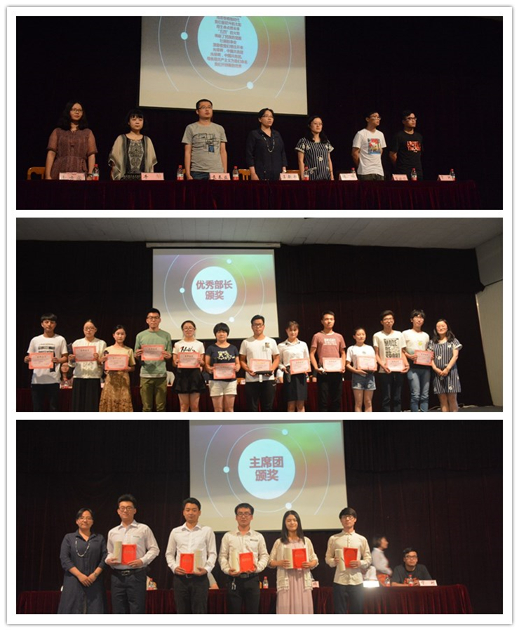 首先,在大会开始之前,全场起立共唱共青团歌,激昂的曲调象征着团学干部奋发向上的精神风貌。紧接着,党总支书记王新平书记做了重要讲话。王新平书记介绍了信工系团学在过去的一年中开展的“图书漂流”、“小蓝帽”等特色创新活动取得了优异成绩以及新媒体工作取得较大提高。同时,王新平书记代表党政领导向默默付出的团学干部以及班干部表示感谢,以及提出以下几点希望:①希望团学干部能够加强理论、专业以及工作业务知识的学习。②希望团学干部能够珍惜岗位、珍惜身份,在团学工作期间能够真正提高自身。③希望团学干部能够做好表率作用,高标准要求自己。④希望团学干部能够树立远大理想。其次,团委副书记余琦代表主席团上台演讲,余琦书记对过去一年的团学工作做出了总结,同时,希望下一届团学干部能够继续秉承“自主创新、坚持不懈、团队合作”的精神。然后,张娟老师公布了优秀干事、优秀部长以及优秀部门的获奖名单,崔晓宁老师和袁奉亚老师为优秀干事颁奖,张娟老师为优秀部长颁奖,王新平书记为主席团成员颁奖。接着,优秀部长代表社联部部长孙苏霞同学上台发言。在大会结束之际,我们欣赏到了由网宣部制作的团学视频。最后,进行大会的最后一项——主席团成员选举,选举过程包括演讲和现场提问两个环节,本次选举本着“公平、公正、公开”的选择,希望最后能够选出最佳的主席团成员。