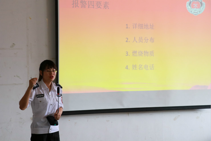 张教官首先通过视频介绍了较经常发生的电动车和彩钢板房火灾的真实案例,向大家强调了火灾发生的速度之快、火灾预防的重要意义;介绍了报警的四要素:1.详细地址;2.人员分布;3.燃烧物质;4.姓名电话;展示了火灾周期示意图,强调了火灾灭火最佳时间段和逃生关键时间段以及重要逃生注意事项。