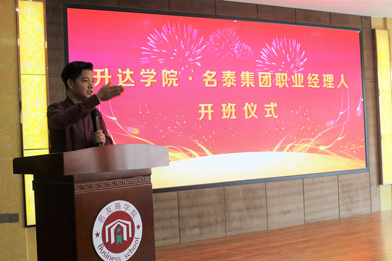到达目的地后,企业相关负责人带领同学们参观企业办公环境并就公司主要产品进行来介绍。随后郑州升达经贸管理学院·名泰集团职业经理人开班仪式在集团会议室隆重举行,首先主持人致开场词并介绍到场领导及嘉宾,师生共同观看了名泰集团企业发展历程宣传片,随后由刘欣老师为大家介绍了名泰集团与升达学院管理系校企合作的发展方向,紧接着由名泰集团人力资源部总监王明永先生介绍“职业经理人”培养的目标及课程设置,他根据中国国情分析了当今企业的市场竞争力,也向大家传授了人才选择的方法。市场副总监高文鹏先生用自己的亲身经历给大家介绍了大学毕业生如何进行职业选择和规划,同时就市场工作这一方面对同学们进行现场答疑。仪式最后是抽奖环节和双方共同合影留念。