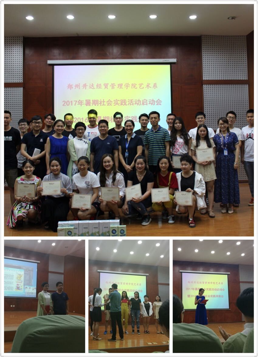 大会对2016年社会实践优秀团队进行了颁奖,获奖学生做了精彩的分享发言。同时系团委书记曹华莹老师对艺术系17年暑期社会实践活动做出重要指示,要求各班学生干部起到带头作用,认真负责好暑期社会实践活动,努力做出自己小分队应有的特色和成绩;最后,院团委组织部部长李松涛老师对如何更好的开展暑期社会实践活动做出指导讲话,李松涛老师就如何选题、如何登录、如何注册备案以及在实践过程中遇到问题如何解决、在实践过程中如何亮好组织旗帜等各个方面给予认真的指导和帮助。相信在各位老师的指导和艺术系学生的共同努力下,艺术系2017年暑期社会实践活动一定会开展的丰富多彩并取得很好的成绩。