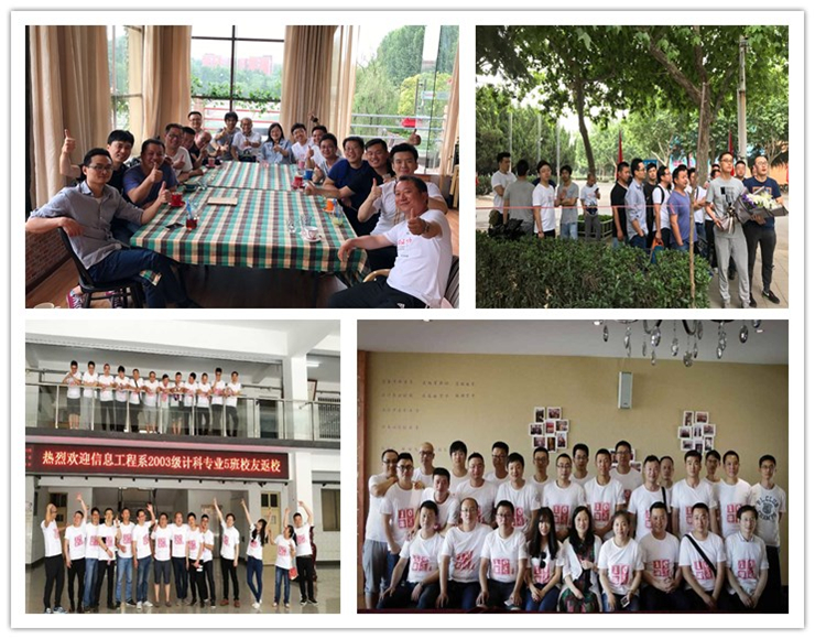 5月13日和6月3日,郑州升达经贸管理学院信息工程系2003级计科4班和5班的校友们回到阔别已久的母校,共庆毕业十周年,追忆同窗旧事。班级的辅导员、信息工程系行政秘书张娟老师出席了校友座谈会。