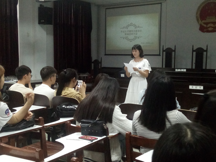 2017年6月8日晚上7:00升达模拟法庭在综合楼225举行了第十四届部长换届选举大会,出席本次会议的嘉宾有第十四届模拟法庭庭委会成员以及第十三届模拟法庭部长们。