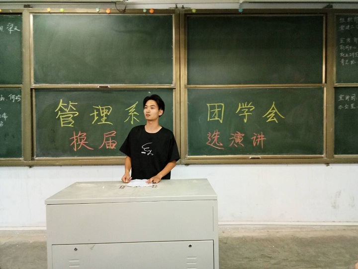 为了团学会工作的顺利开展,同时也为了给新学期的工作奠定良好基础,管理系团学会换届竞选演讲大会于6月7日下午17:00在二号楼110教室举行。参加本次大会的有团委常务副书记沈明宇老师、学生会主席范博学长等主席团成员以及团学会全体成员。