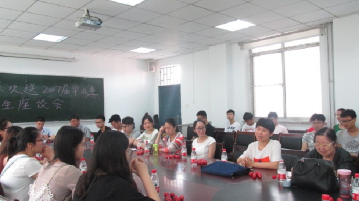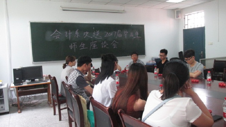 夏日凉凉,微风习习。5月31日上午9:30,会计系在教学1号楼114会议室召开了欢送2017届毕业生师生座谈会。到场的嘉宾有:会计系副主任范新安博士、会计系行政秘书兼团委书记陈刚老师、会计系行政秘书刘锦老师,教师代表邵葵老师、蒲敏老师、杨南老师,以及2017届31位优秀毕业生代表。