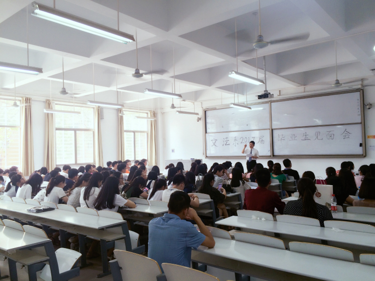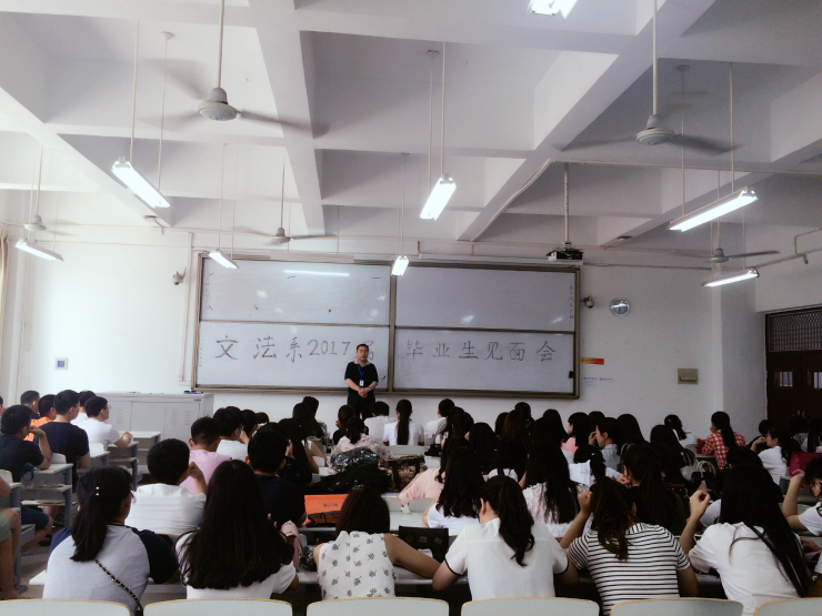 为了庆祝毕业生们顺利毕业,5月31日上午10点,文法系在道镕楼107召开2017届全体毕业生见面会。文法系主任段丰乐、党总支书记杨明志、教学秘书曹丹丹和毕业班辅导员郭青梅老师参加会议。会议由郭青梅老师主持,文法系2017届全体毕业生到场参加了此次见面会。