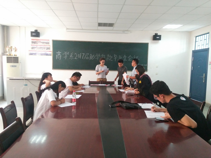 2017年6月1日下午13时30分,在4号楼商学系会议室,举行了与2017届贷款毕业生面对面交流会议。会议活动由商学系张莹老师主持。