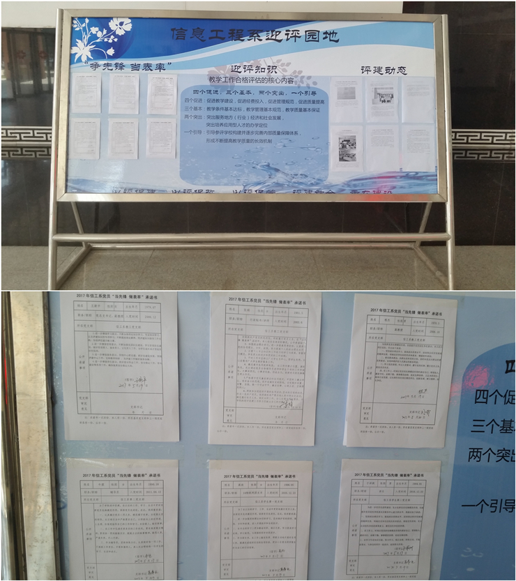 当前我院迎评促建开展的如火如荼,为积极响应学院号召,配合学院工作,我系结合学院“我为评估做贡献”的工作主题,在系内党员同志中深入开展了“当先锋、做表率、晒承诺”活动。