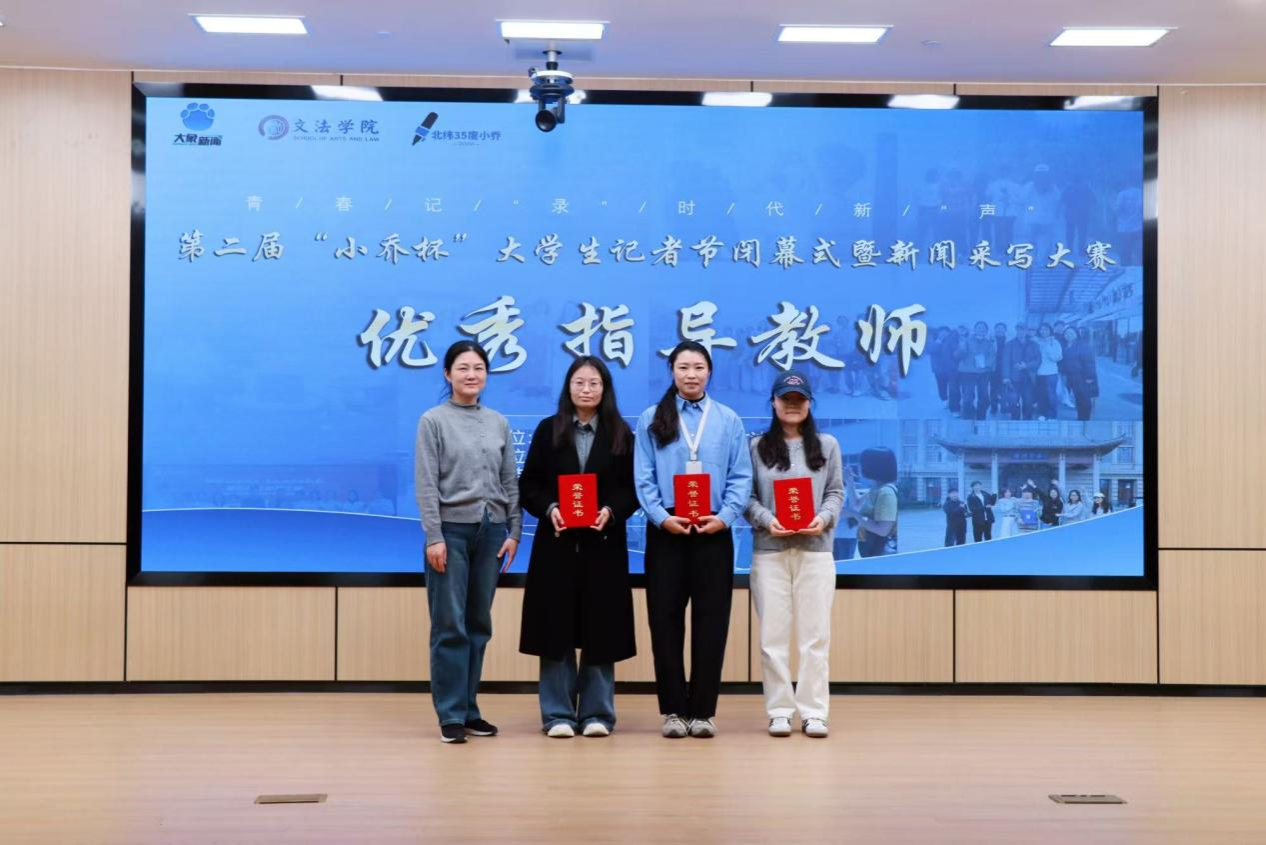 12月30日,第二届“小乔杯”大学生记者节闭幕式暨新闻采写大赛颁奖典礼在郑州升达经贸管理学院新图书馆二楼1号报告厅举行。文法学院副院长赵严俊、党委副书记郑玲玲、新闻学教研室主任赵静及校内外获奖师生代表出席活动。