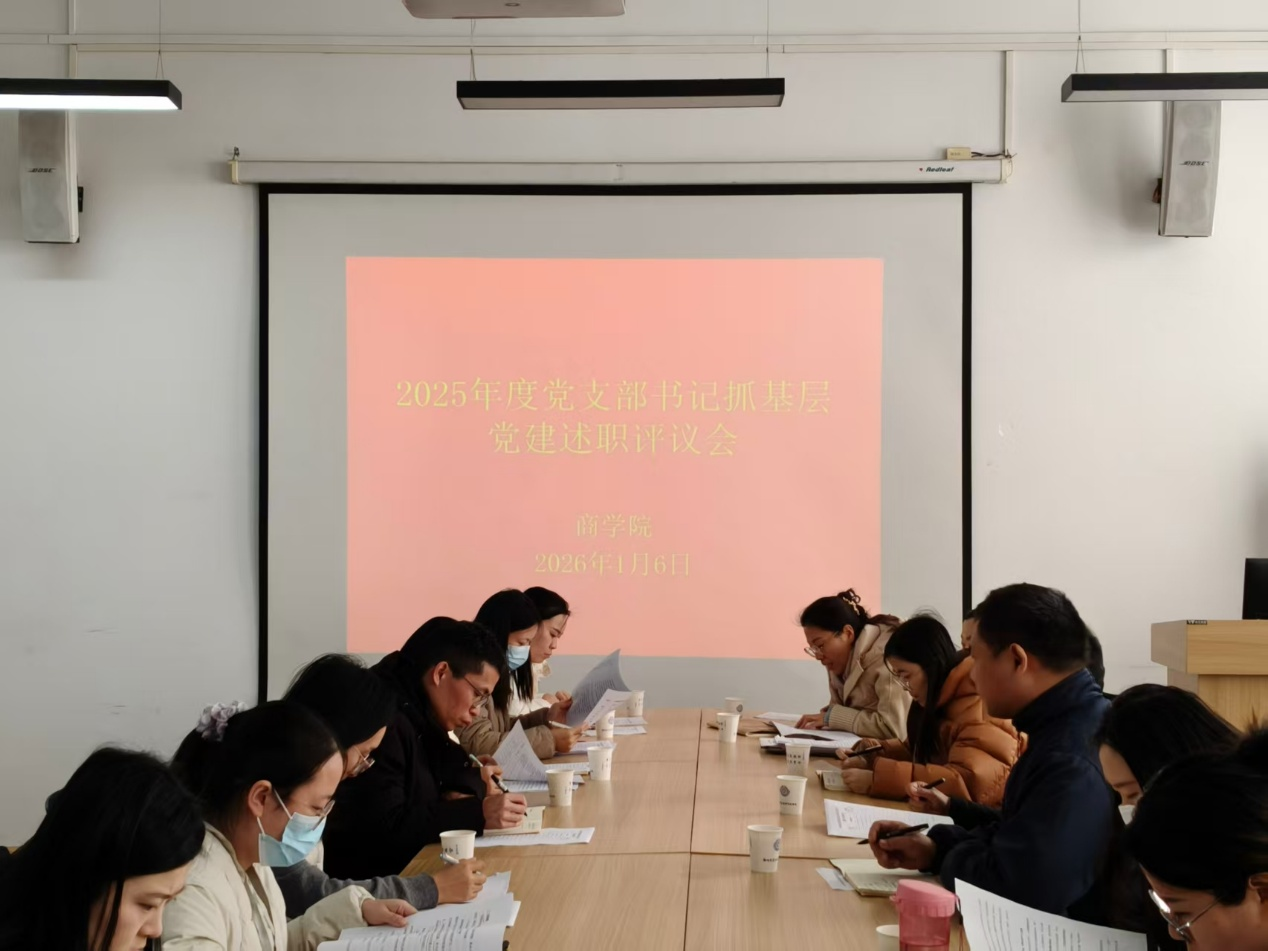 2026年1月6日上午,商学院党委在教学楼2号楼315会议室召开党支部书记抓基层党建述职评议会。全体党委成员、各党支部书记、党员代表和群众代表参加了此次会议,会议由学院党委书记郭峰主持。