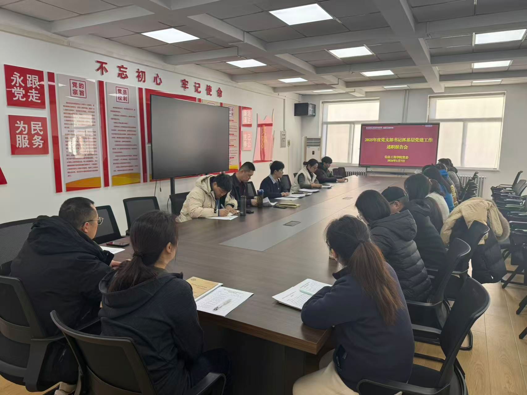 为坚持和加强党的全面领导,夯实基层党建工作基础,持续推动全面从严治党向基层延伸,2026年1月7日上午,信息工程学院党委在商管楼218会议室召开2025年度党组织书记抓基层党建述职评议会议。会议由党委书记钟江鸽同志主持,学院党委委员、各党支部书记、师生代表共20人参加会议,全面评议考核各党支部书记抓基层党建工作履职情况。