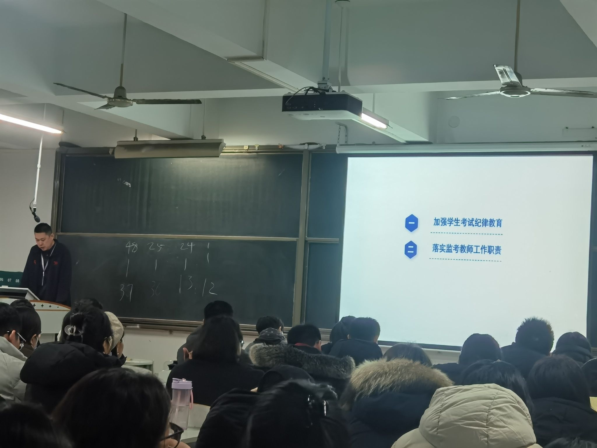 会议伊始,程杰副院长作期末考试监考工作专题培训。他围绕监考工作的核心要求、具体流程、注意事项等内容进行全面讲解,从考前准备、考场布置、考生身份核验,到考试过程中的纪律维护、突发情况处置,再到考后试卷回收、密封等环节,逐一明确操作规范。程杰副院长着重强调,监考工作是维护考试公平公正的关键环节,全体监考教师必须强化责任意识,严格履行监考职责,坚守岗位、规范履职,杜绝各类考试违纪作弊行为,全力保障考试工作的严肃性与规范性。