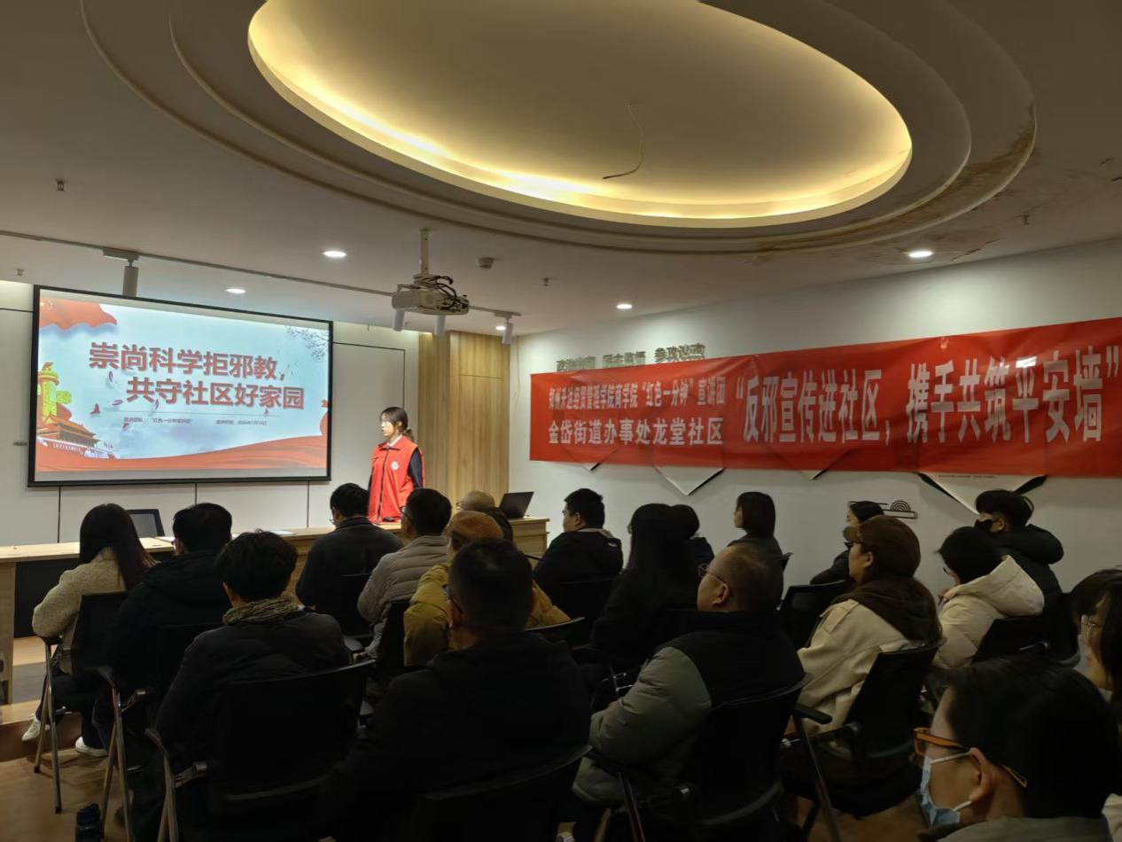 为筑牢社区反邪教思想防线,增强党员群众识邪、防邪、拒邪能力,让平安理念与新春暖意深度交融,商学院“红色一分钟”宣讲团于2026年1月16日至23日前往郑州市管城回族区金岱街道办事处龙堂社区以“新春反邪齐聚力,幸福家园共守护”为主题,开展反邪教宣讲以及拓福活动等,让反邪理念深入人心,为社区平安注入力量。