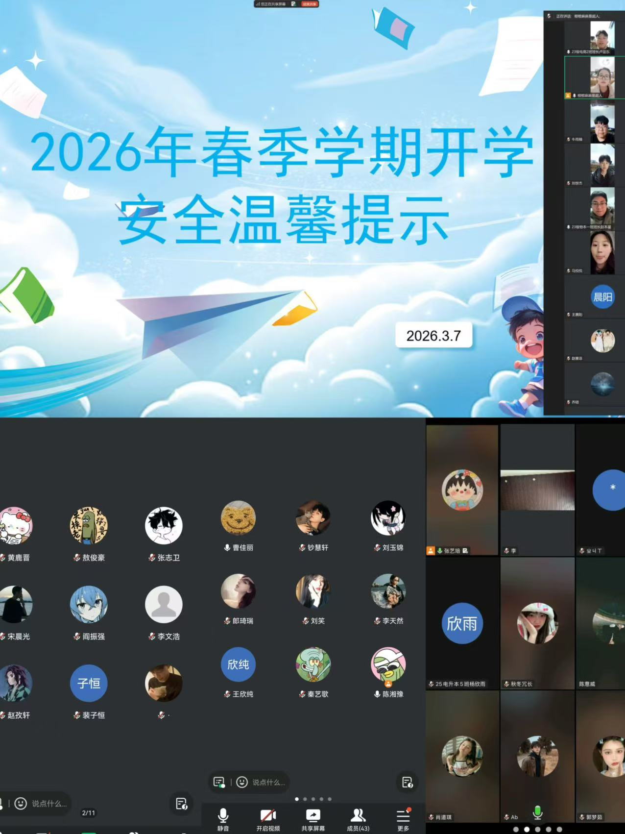 为切实做好2026年春季学期开学季学生安全教育管理工作,引导学生平安有序返校、快速切换至学习状态,筑牢校园安全屏障,商学院辅导员组织各班学生开展线上春季学期开学安全主题班会。本次班会严格落实《2026年春季学期开学安全温馨提示》要求,开展全覆盖式安全警示教育与成长引导。