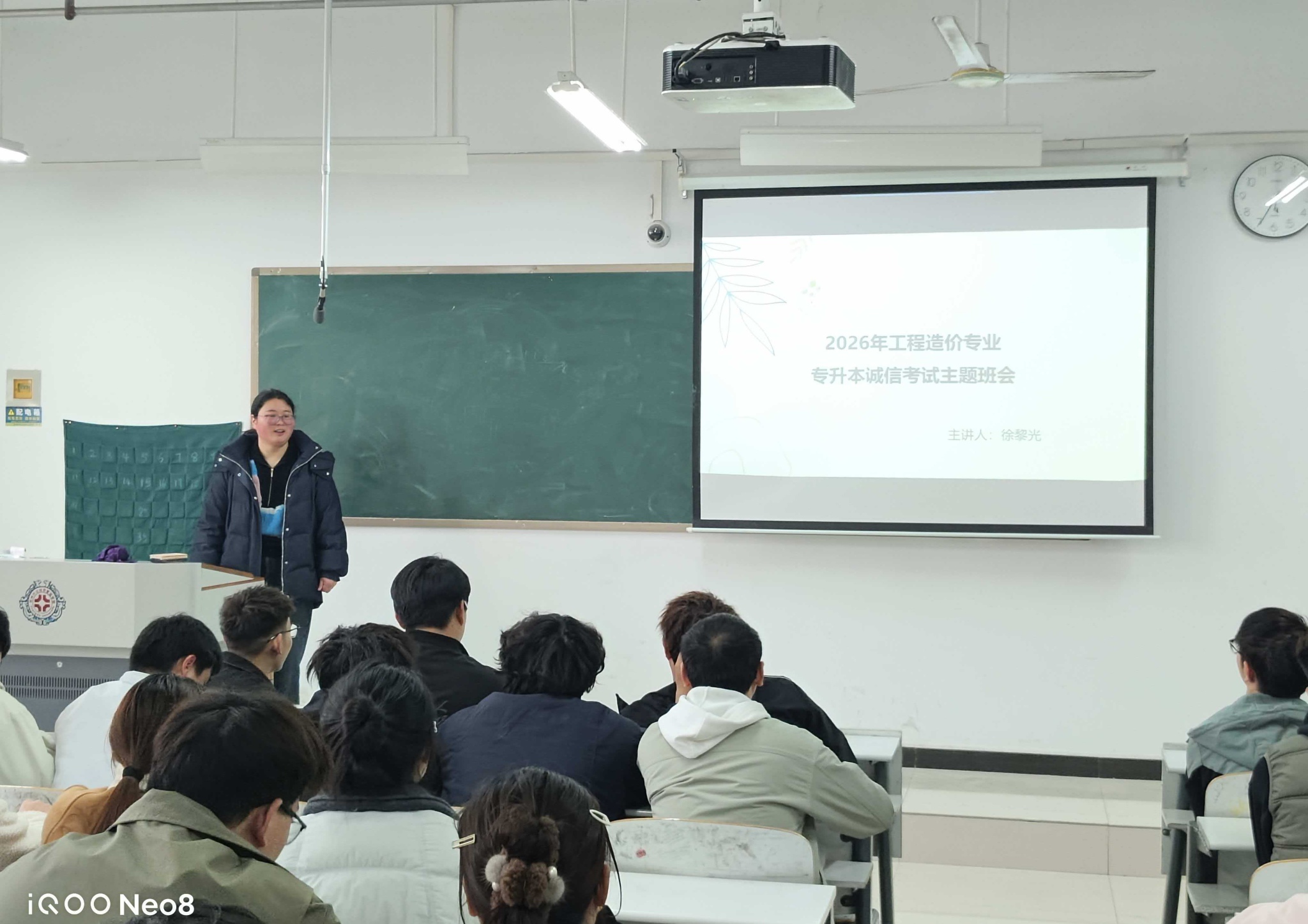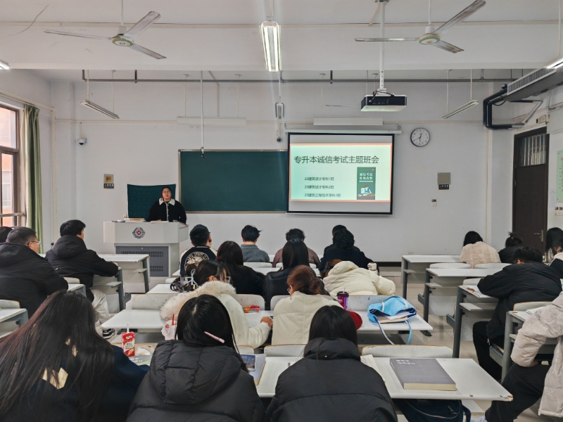 为积极落实河南省教育厅及学校关于2026年专升本考试工作的相关要求,切实强化考风考纪教育,筑牢诚信考试防线,确保考试公平公正,建筑工程学院辅导员于考试之前组织全体专升本考生召开了诚信考试主题班会。