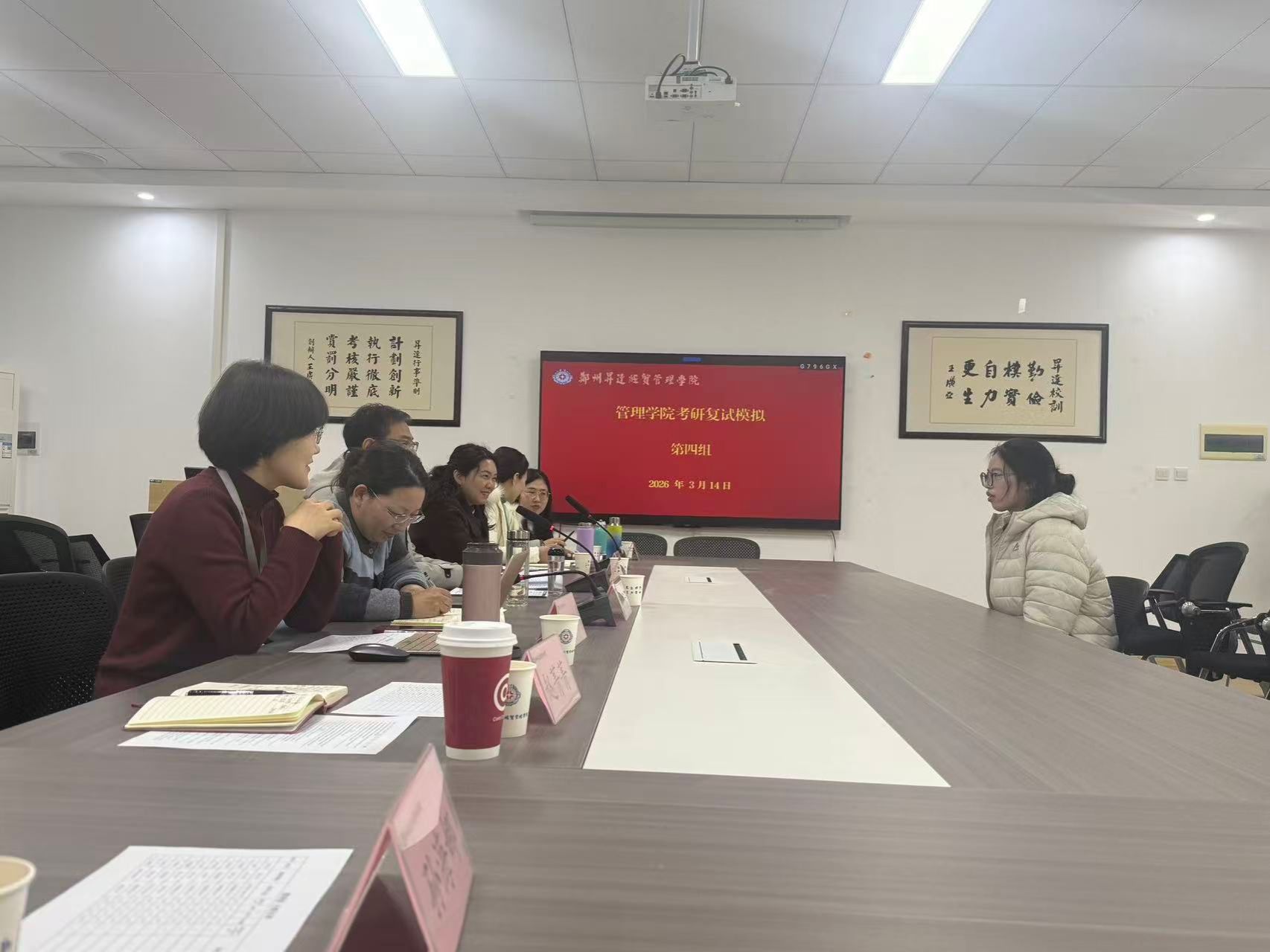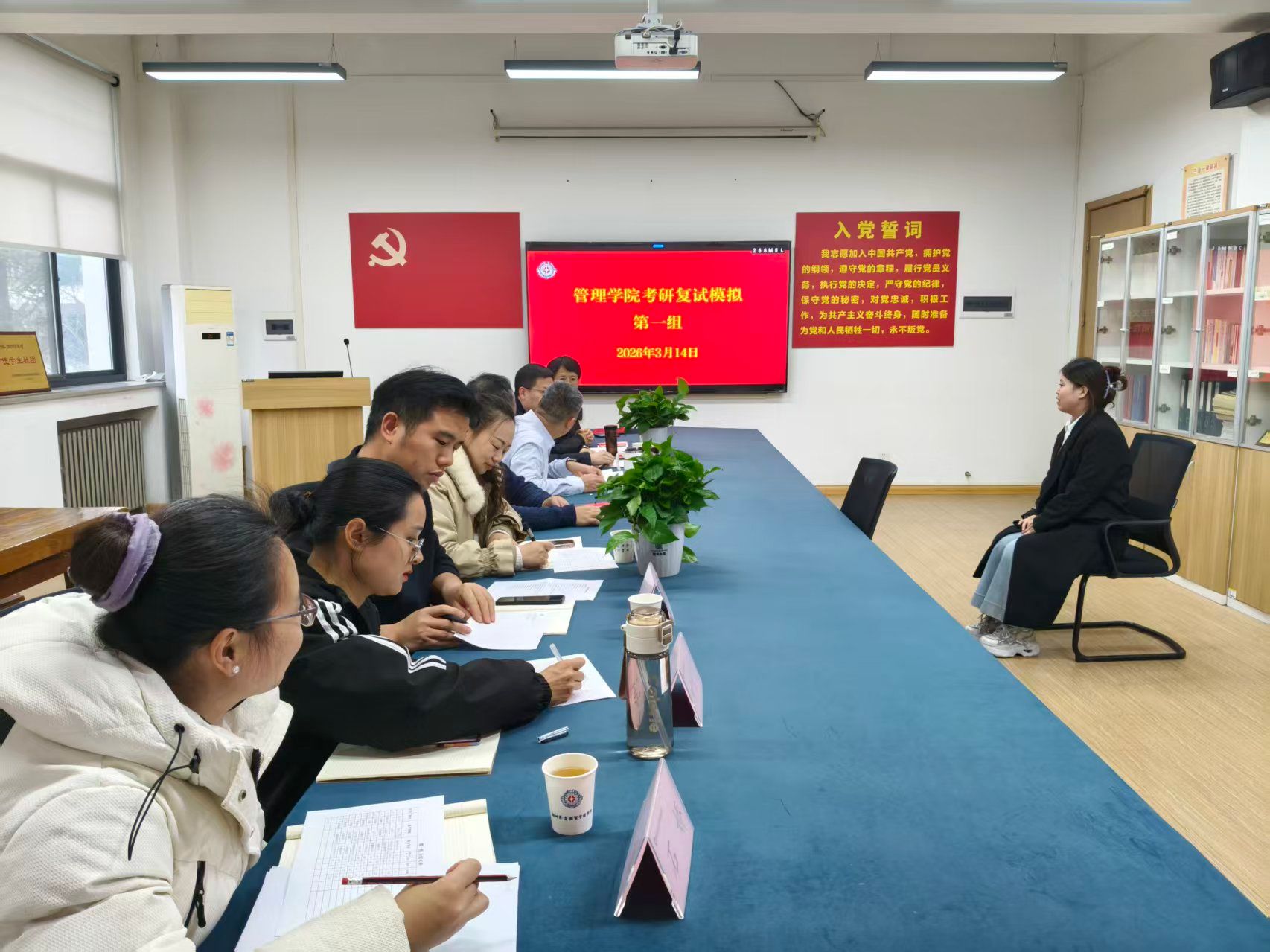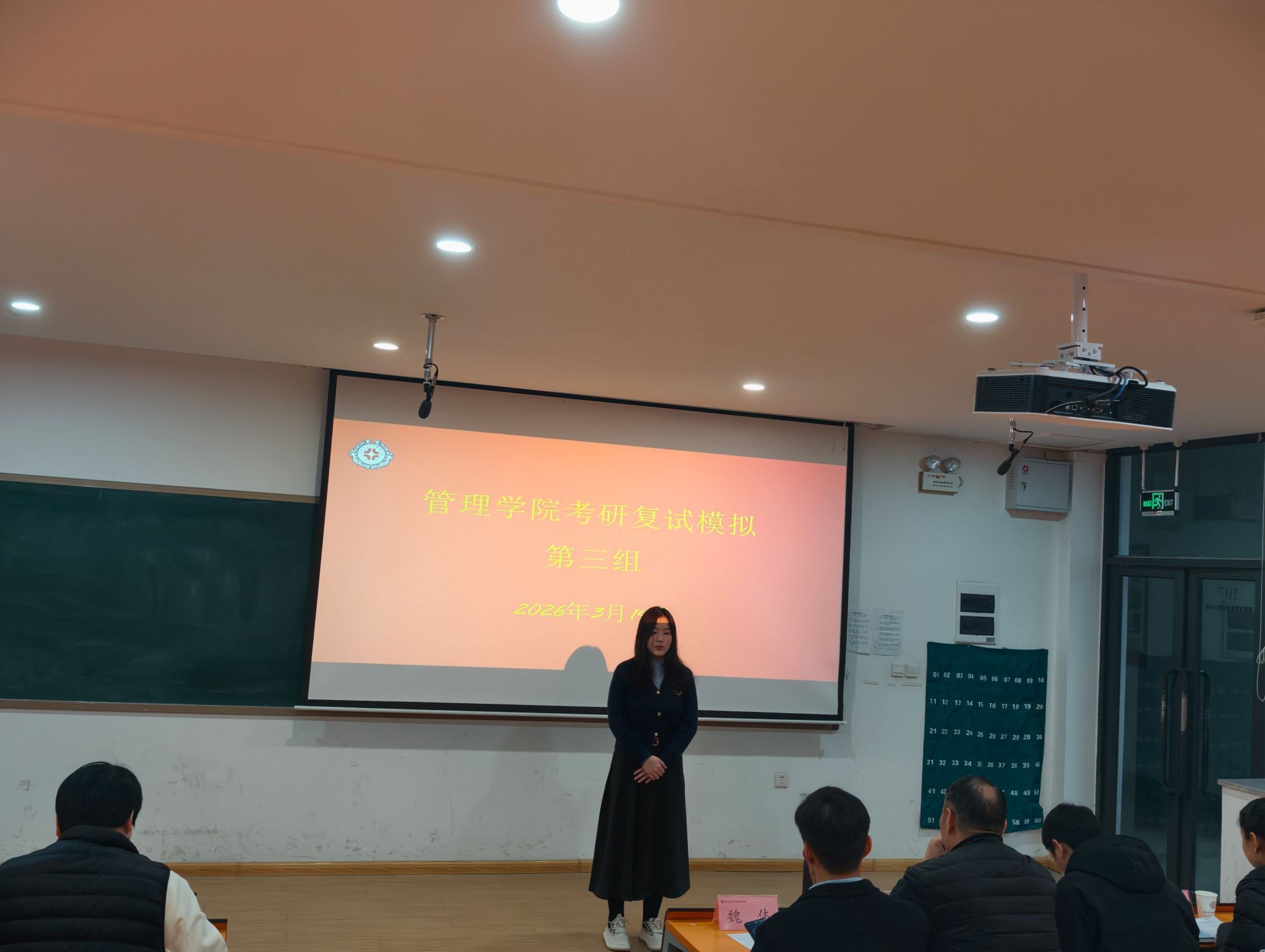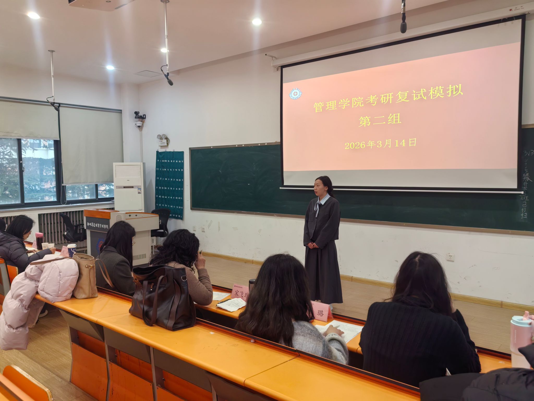 研途漫漫,复试为关。考研复试既是研究生人才选拔的重要关口,更是学子圆梦深造的关键一程。为助力2026届考研学子提前熟悉复试场景、锤炼应试本领、自信从容赴考,管理学院于2026年3月14日在教学2号楼举办2026届考研复试模拟面试活动。