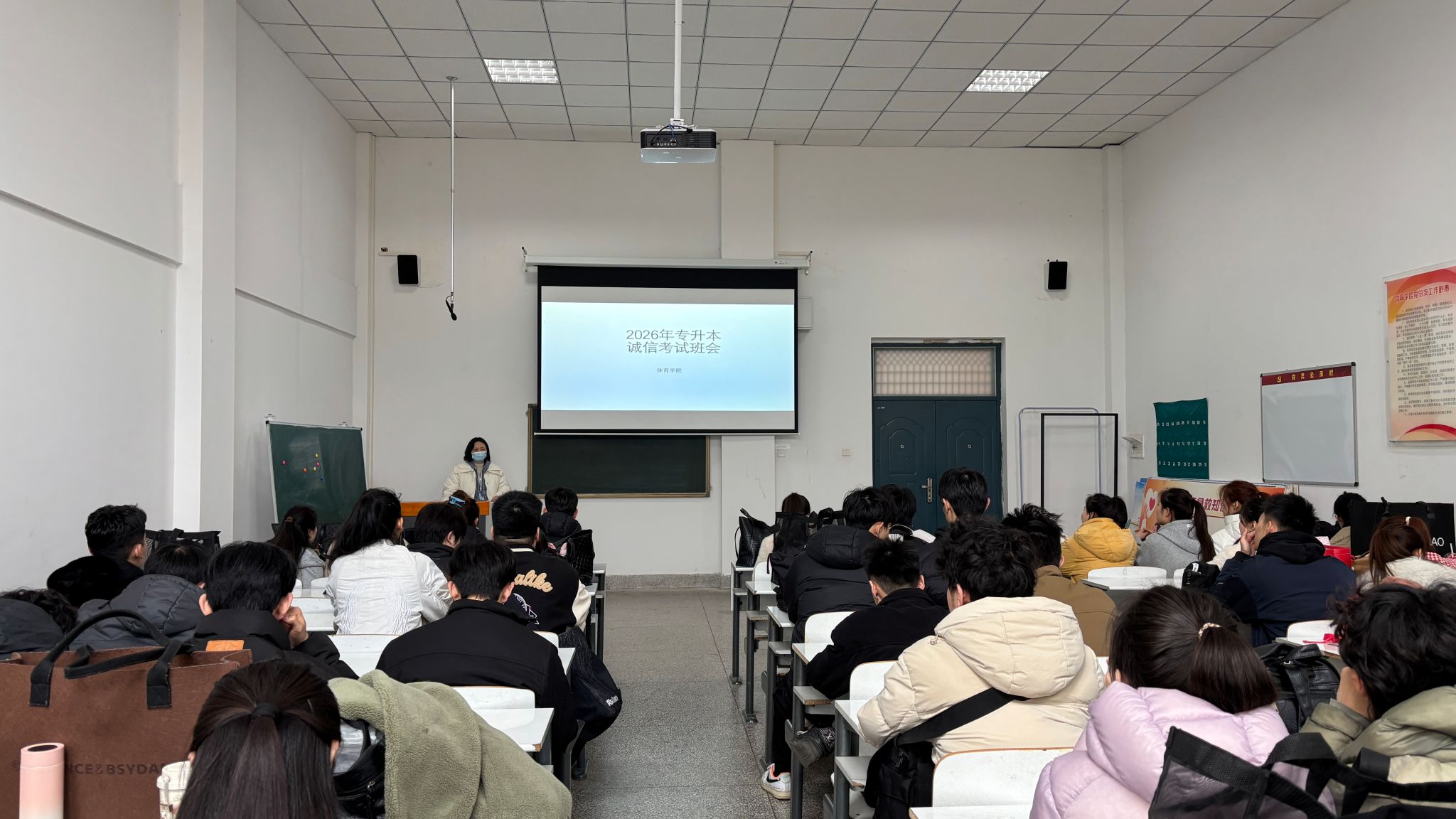 为严肃考风考纪、强化诚信考试意识,保障2026年普通高校专升本考试平稳有序开展,3月13日,体育学院辅导员梅孝徽组织全体专升本考生召开诚信考试主题班会。