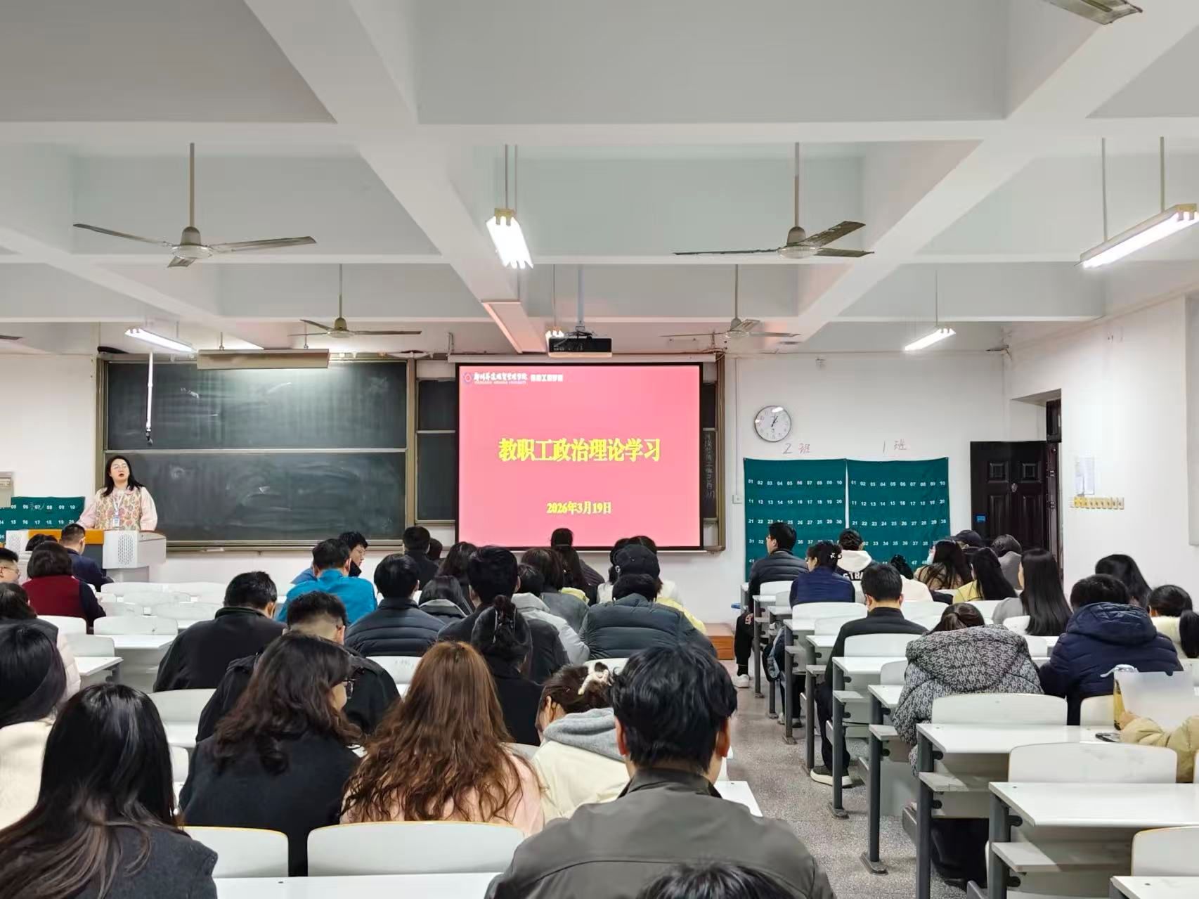 2026年3月19日下午,信息工程学院在资讯楼213教室召开2025—2026学年第二学期第二次教职工政治理论学习会议。会议由电子信息工程专业学生第二党支部牛新翔主持,学院全体教职工参加。