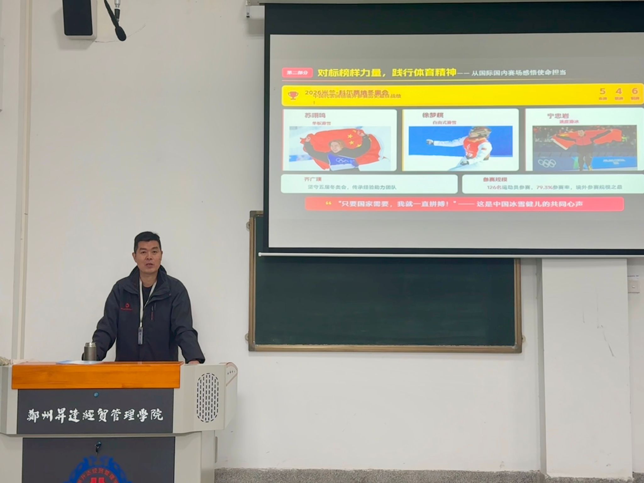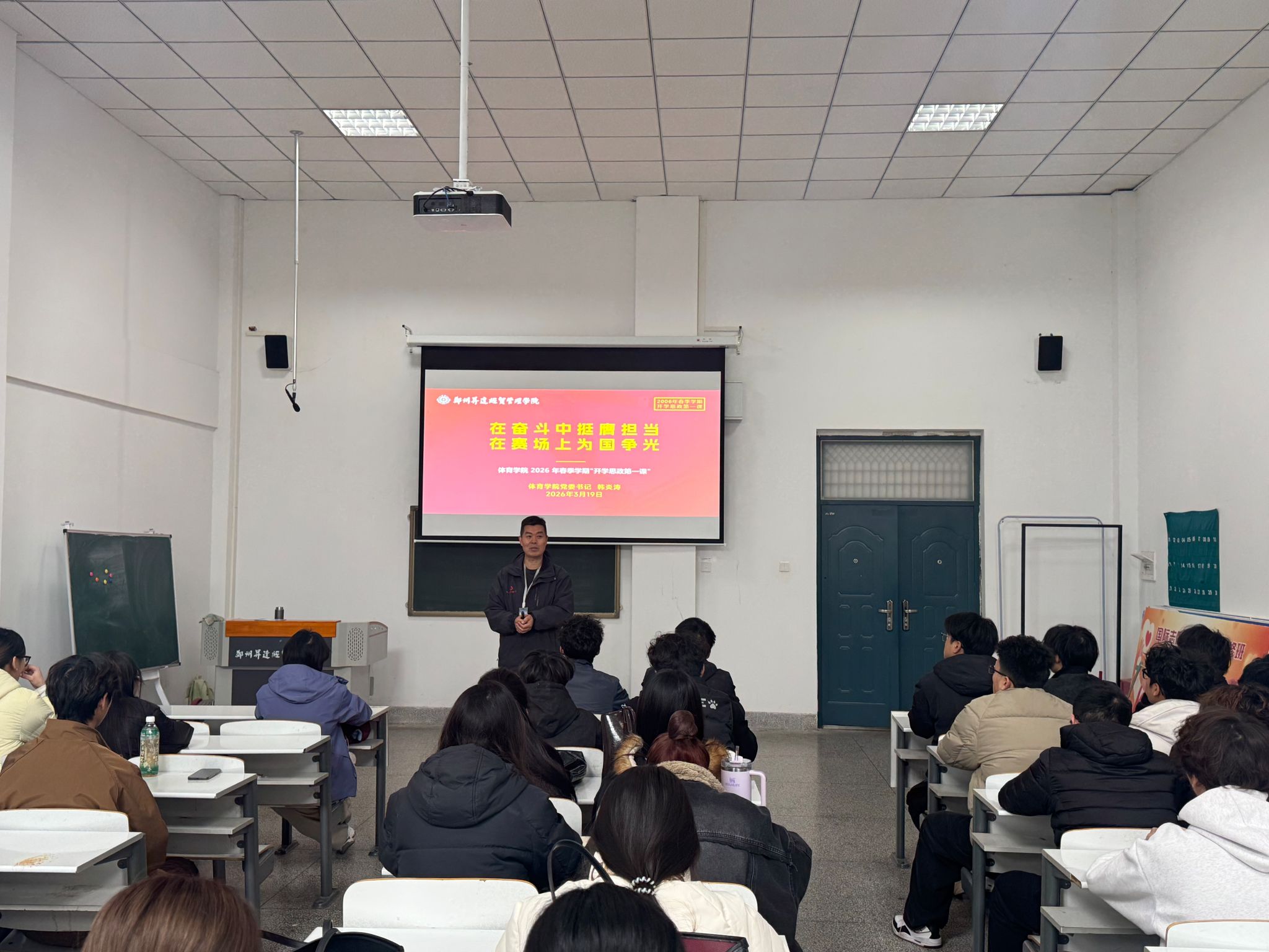3月19日下午,体育学院党委书记韩炎涛为2025级学生讲授春季开学思政第一课。
