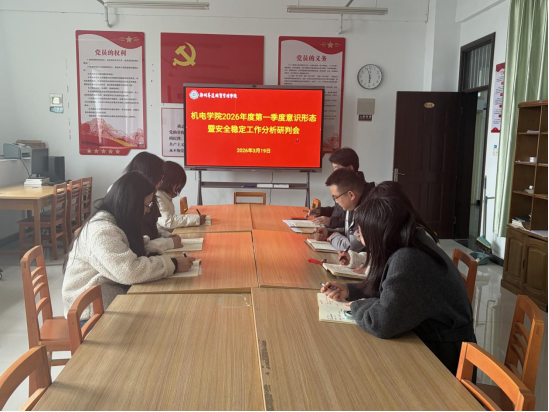 3月19日下午,机电学院在万林大楼616党建活动中心召开2026年度第一季度意识形态暨安全稳定工作分析研判会,学院全体党委委员参加了会议。会议由院党委书记丁向育主持。