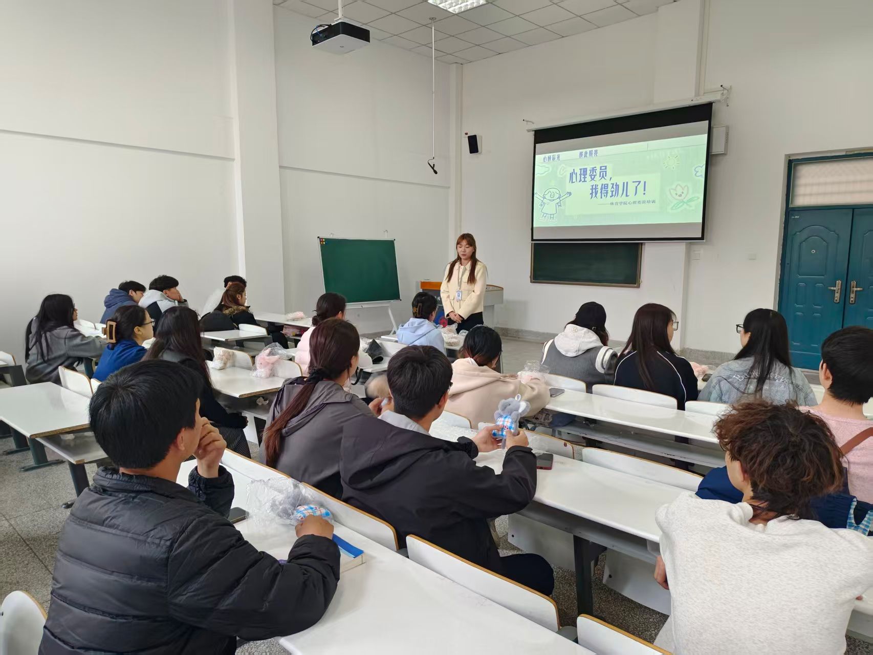培训现场,体育学院心理专员康晓晨老师围绕心理委员核心职责展开细致讲解,明确大家身为班级心理健康观察员、倾听员与沟通纽带的岗位定位,要求各位委员主动关注同窗情绪状态、做好朋辈陪伴疏导、规范上报各类心理异常情况,同时着重强调,心理委员要正视自身情绪,学会接纳自我情绪波动、合理疏导内心压力,切勿在工作中过度内耗,始终保持健康积极的履职心态。为助力学员舒缓压力、做好自我关怀,学院还为全体参训心理委员发放专属解压豆袋,用暖心实物为大家的心理健康保驾护航。