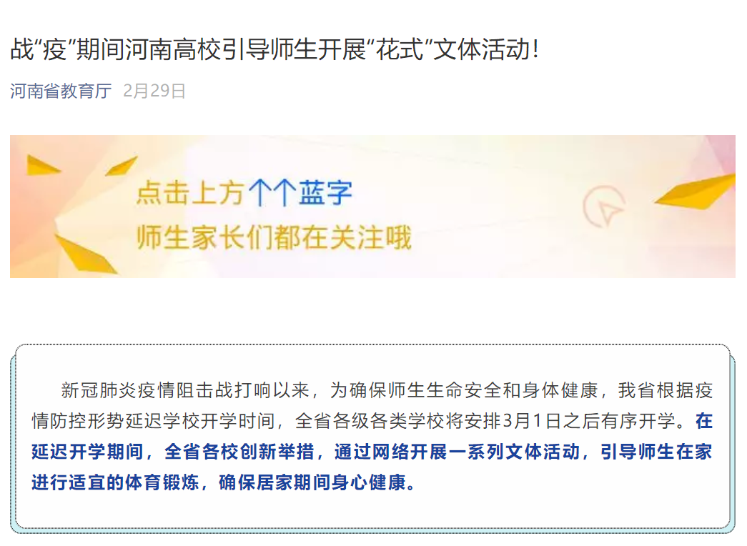 来源:河南省教育厅官方微信公众号 时间:2020-2-29