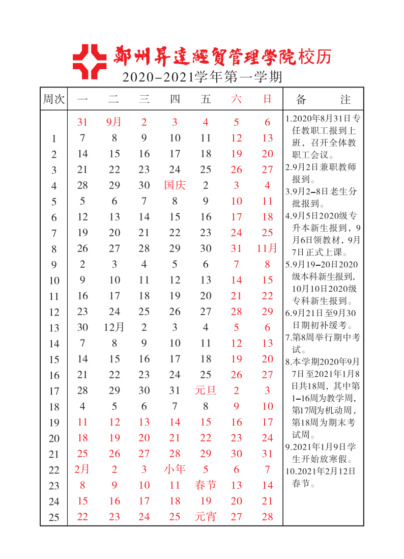 2020—2021学年第一学期