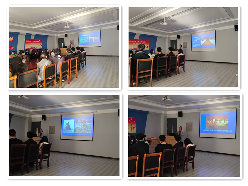 接着,副院长赵维平从2020年以来国际和国内形势发生的几件大事出发,以及在疫情爆发之后,中国所面临的国际形势,启发引导学生深思并回顾历史。赵院长指出,我国在抗击新冠肺炎疫情防控中取得了重大战略成果,充分展现了中国共产党领导和我国社会主义制度的显著优势,极大增强了全党乃至全国各族人民的自信心和自豪感、凝聚力和向心力。赵院长从辛丑条约到虎门销烟、辛亥革命,从五四运动到中国共产党的诞生,向同学们生动的讲述了中国近现代历史和中国革命的不易,没有共产党就没有新中国,正是中国共产党使中国走向了光明之路。赵院长强调作为新时代的大学生一定要关注国际形势,关心国家大事,要努力做到学史明理、学史增信、学史崇德、学史力行,从而更好地为国家社会的发展贡献力量。