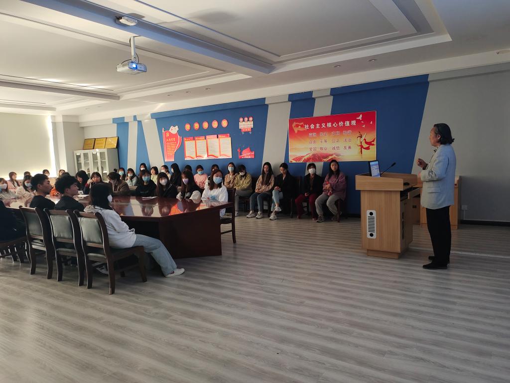 最后,副院长赵维平结合各历史阶段产生的优秀艺术家及作品,以及我校艺术学院师生创作的大批优秀作品,生动阐明了作为艺术类大学生如何发挥专业特长,服务国家社会发展。副院长赵维平强调作为艺术学的师生,要重视自己的专业学习,要意识到自身优势,积极投身到国家的社会主义建设之中,要运用各种艺术手段,为祖国强盛,民族复兴,奉献自己的智慧和力量。