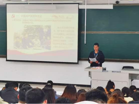 百年征程波澜壮,历久弥坚续华章。新学期伊始,为庆祝中国共产党成立100周年,深入学习贯彻习近平总书记在党史学习教育动员大会上的重要讲话精神,建工学院党总支于2021年3月25日下午4点,在实训大楼610教室,组织开展了建工学院“开学思政第一课”暨党史学习教育,建工学院全体党员、以及各班主要班委参加了此次活动。本次活动由党总支书记韩炎涛同志主持。