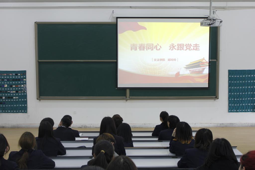 为引导广大团员青年增强“四个意识”,坚定“四个自信”,做到“两个维护”,坚定不移听党话、跟党走,3月26日中午十二点半,由文法学院团委主办,组织部承办的第六期业余团校第八课在教1楼118教室举行。此次团课由文法学院团委书记郑玲玲老师讲授,团校全体成员准时到场听讲。