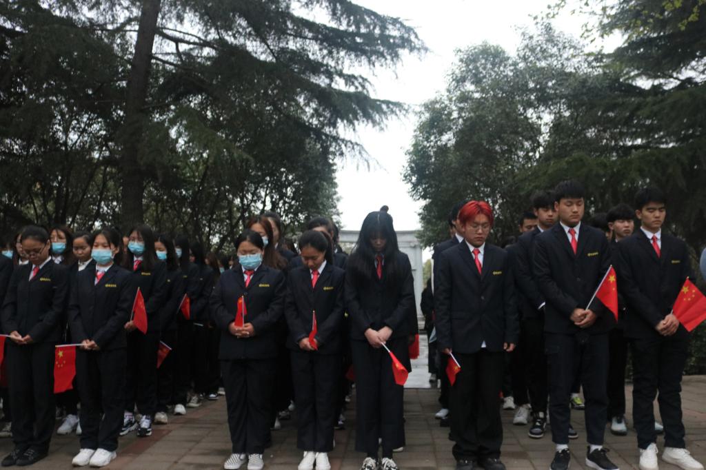 升旗仪式后,全体师生向革命英雄默哀,寄托对英雄无限的哀思和敬意。