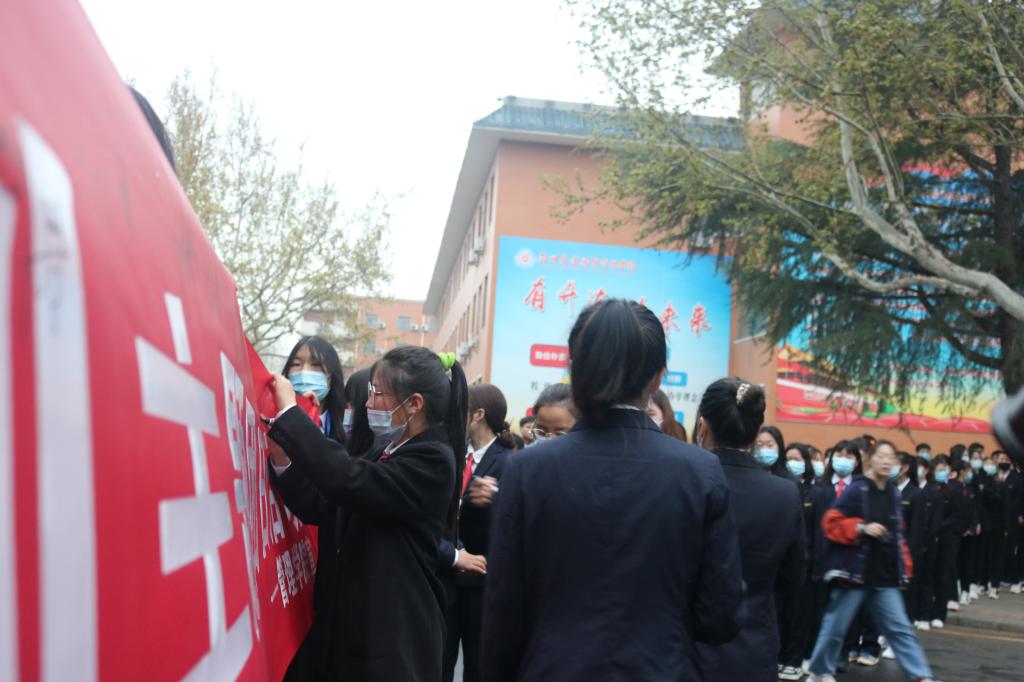 最后,现场师生在国旗前开展了“祭英烈 学党史 跟党走”的签名活动。