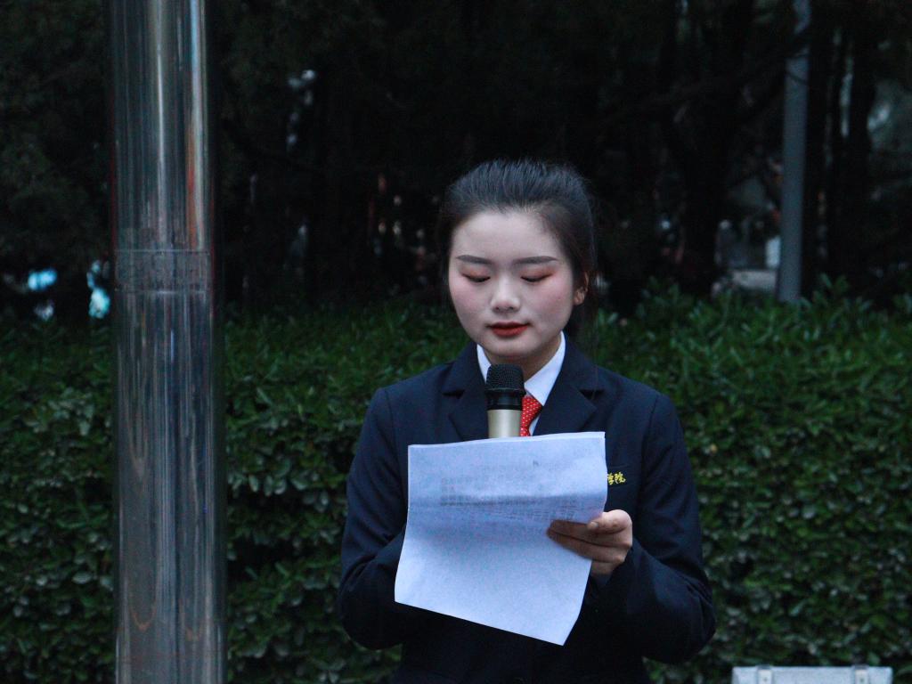团员代表管理学院邵玉姣同学作国旗下演讲,表达了作为青年大学生要铭记英雄烈士,自觉学习党史,将青春梦融入中国梦,为实现中华民族伟大复兴奉献青春力量。