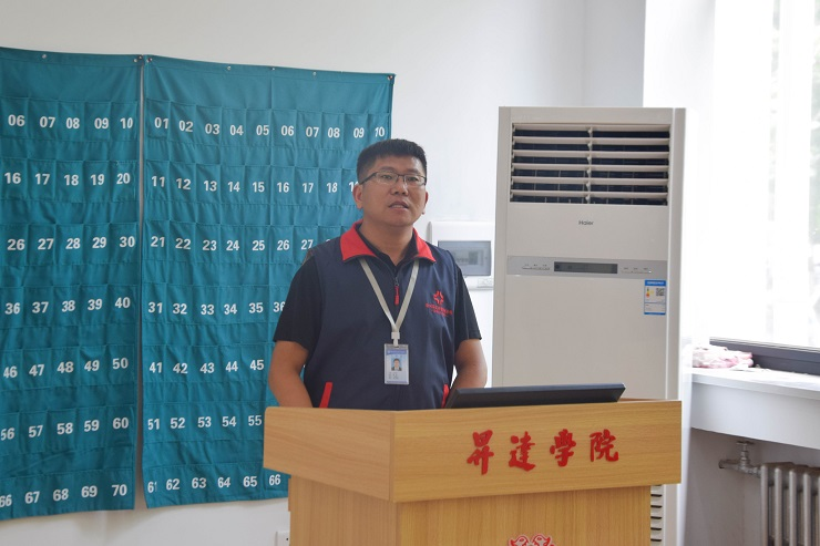 首先陈刚老师对此次比赛进行介绍,希望在场教职工们能用歌声颂扬党的光辉历史,铭记党的丰功伟绩,继承党的光荣传统。