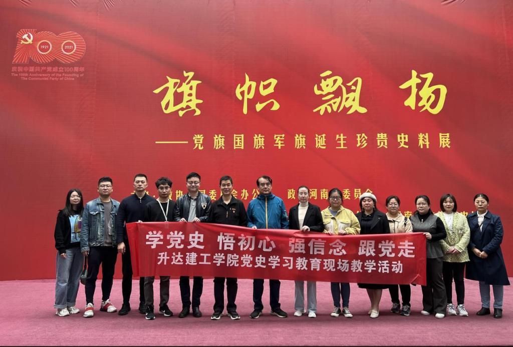 9月29日上午,在党委书记韩炎涛的带领下,建工学院全体党委委员和各支部书记到升达艺术馆进行了一场别开生面的党史学习教育。通过参观学习党旗、国旗、军旗诞生的珍贵史料,进一步提升了全员党史知识水平,营造了党史学习教育的文化氛围。