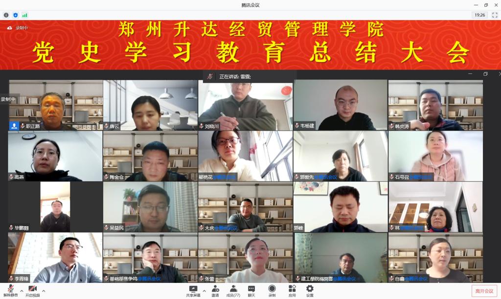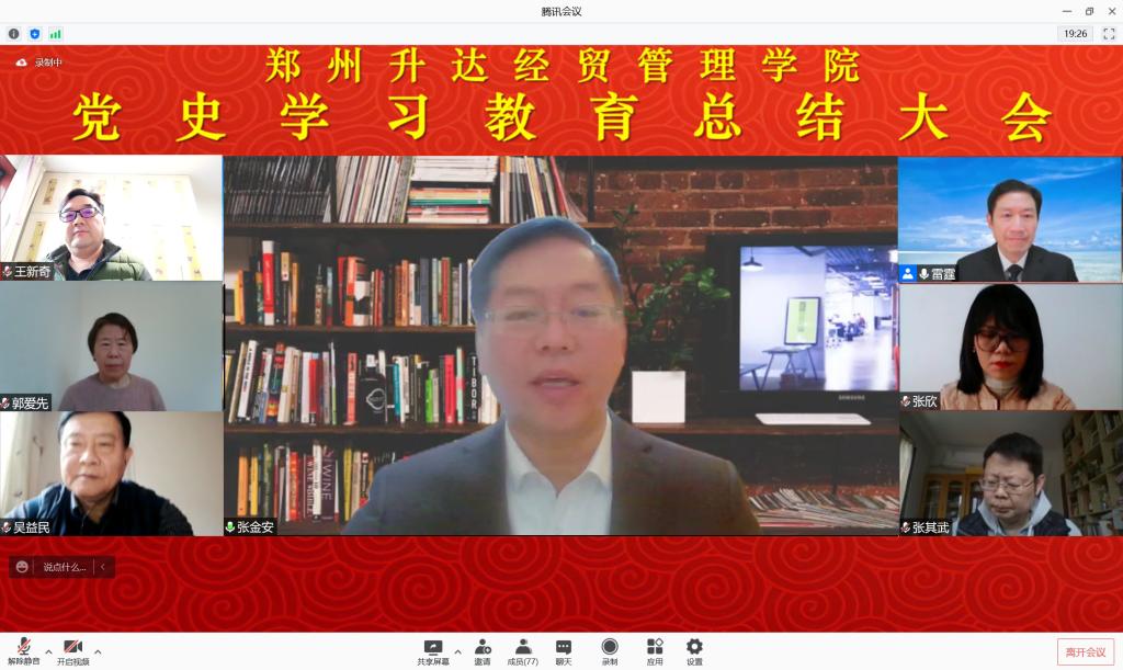 会议以视频方式召开。全体校领导,校党委委员、纪委委员,各党政职能部门负责人,各二级党组织书记,各院(部)院长(主任)、副院长(副主任)、团委书记以及党史学习教育领导小组办公室成员参加会议。