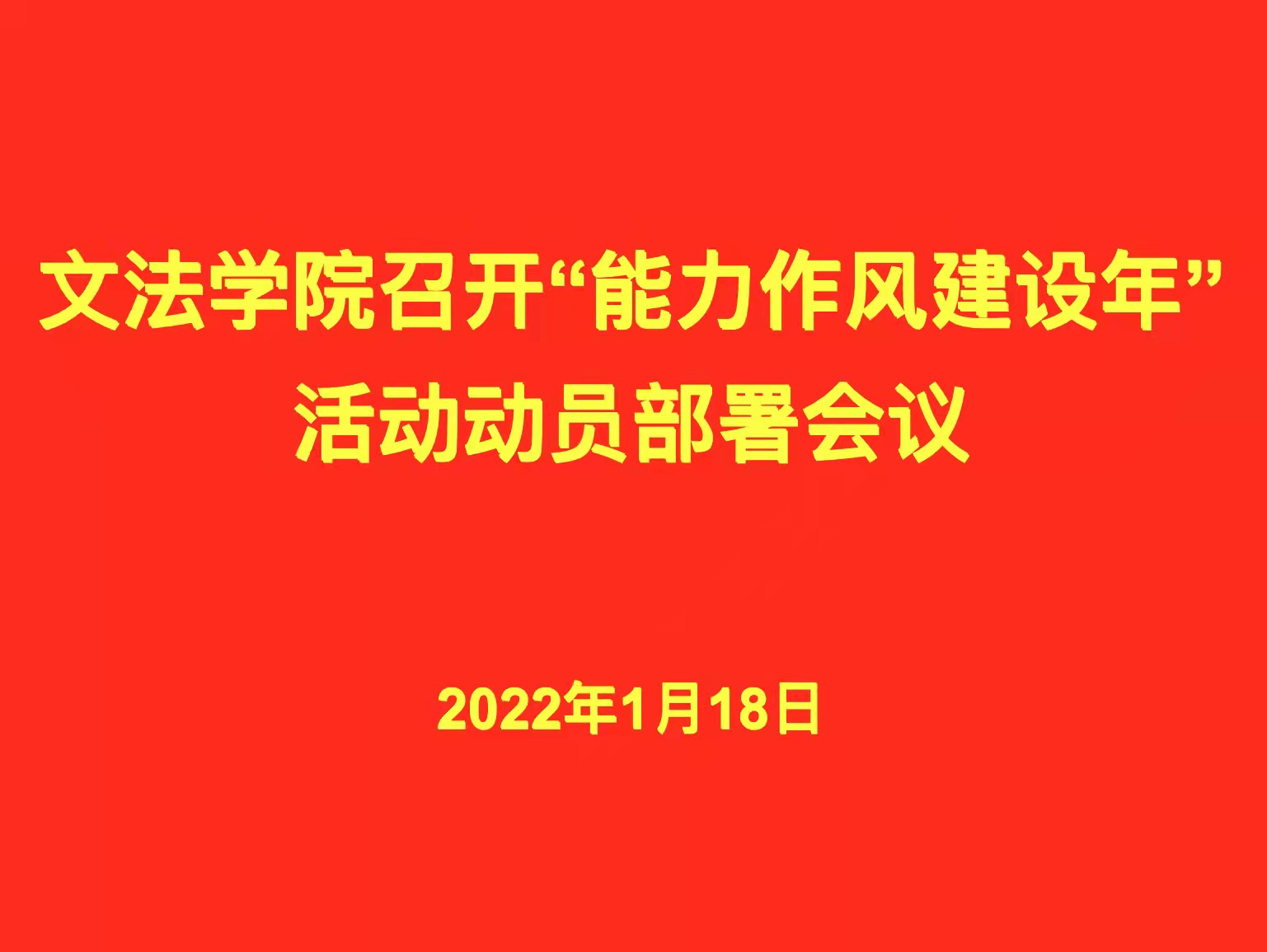1月18日下午,文法学院党委组织召开“能力作风建设年”活动动员部署会议,学习贯彻学校“能力作风建设年”活动动员大会精神,部署学院“能力作风建设年”活动各项工作。学院领导班子、各党支部书记参加会议,会议由学院党委书记刘晓川主持。