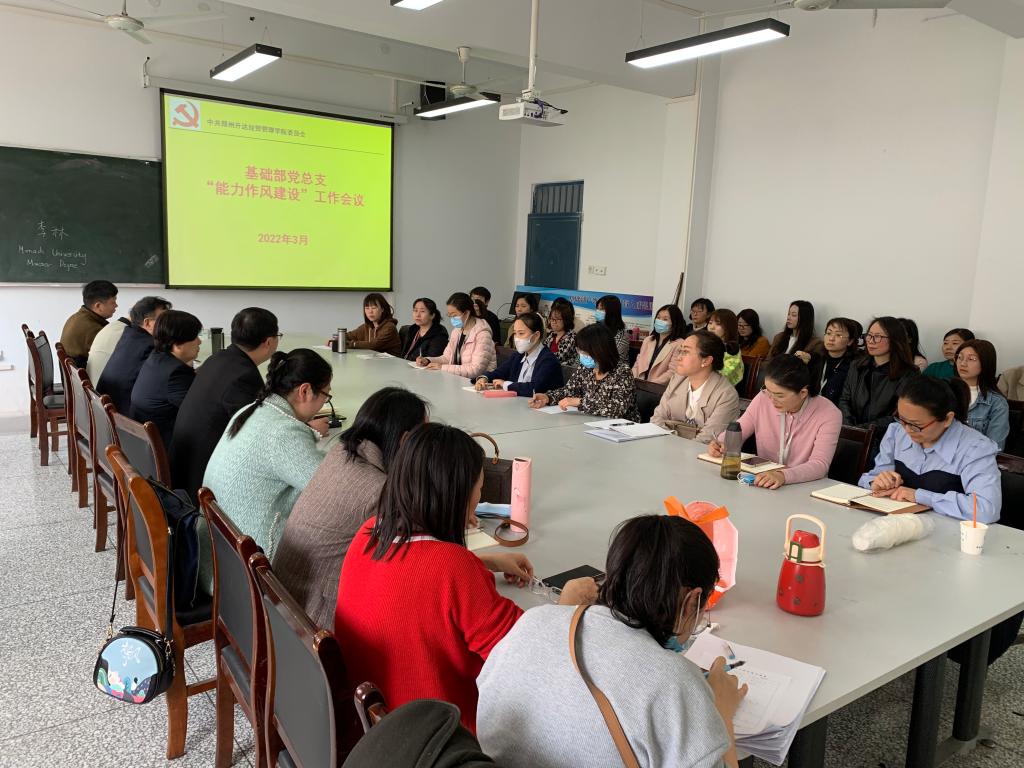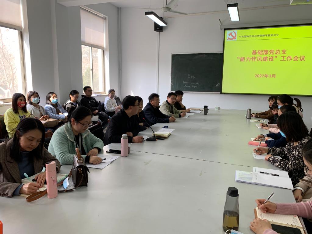 接着,党总支宣传委员权宇同志传达了《郑州升达经贸管理学院“能力作风建设年”活动实施方案》,集中学习了学校“能力作风建设年”活动精神。同时,强调了开展“能力作风建设年”活动的重要性、必要性和紧迫性。