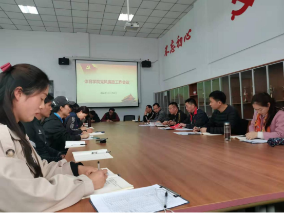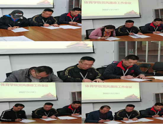 为持续推进全面从严治党,营造风清气正的良好政治生态,3月14日下午,体育学院党总支在体育馆会议室召开“党风廉政建设责任制”工作会议,会议由体育学院党总支书记杨明志主持,院长张王利、党支部书记、教研室主任和部分教职工参加会议。