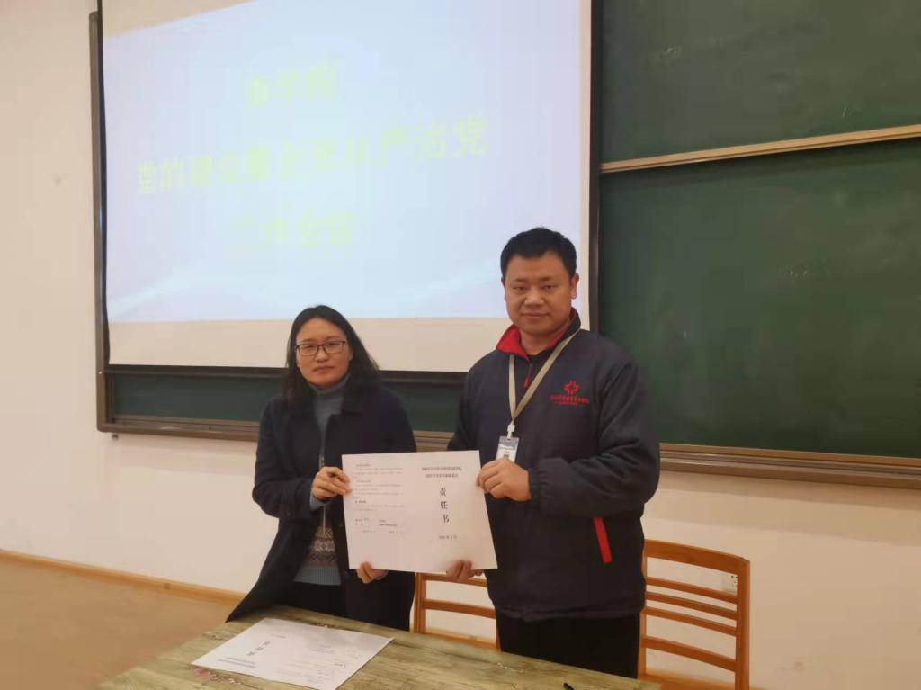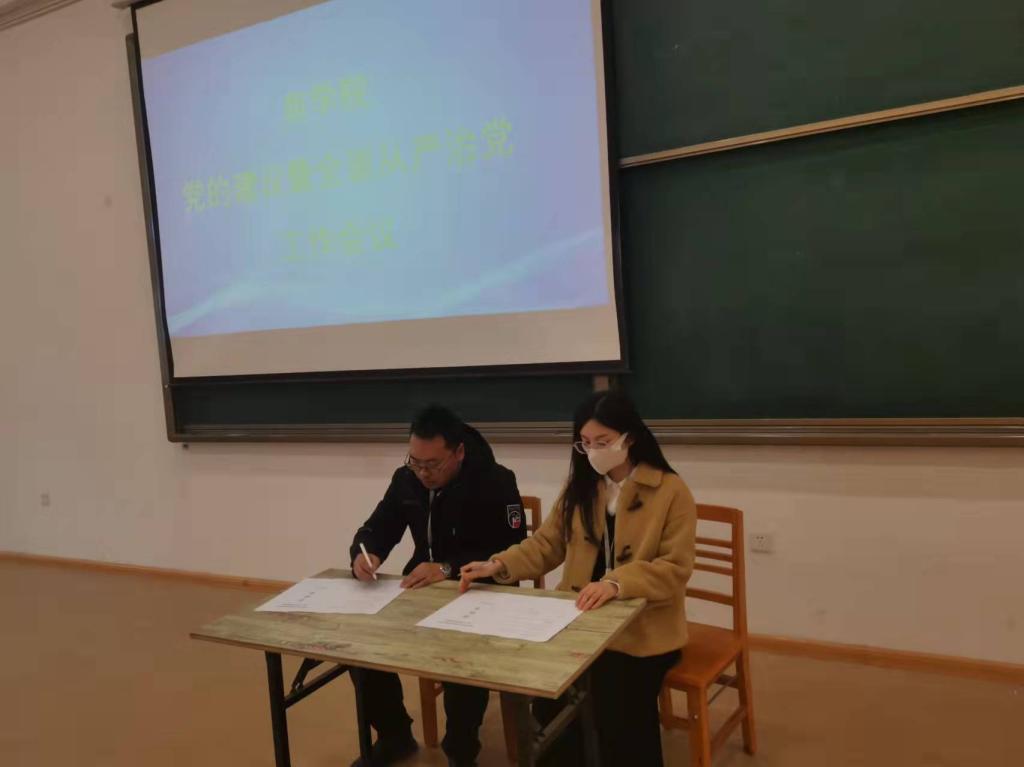 最后,郭峰书记、白院长分别与教研室代表、基层党支部代表签订了《党风廉政建设责任制书》,全体教职工签订了《廉洁自律承诺书》。