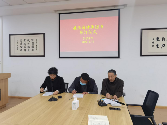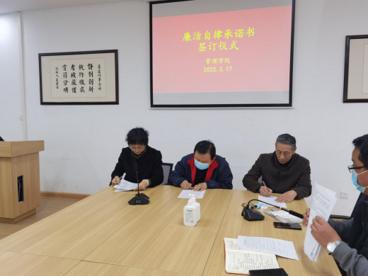 根据郑州升达经贸管理学院党的建设暨全面从严治党工作会议精神,落实学院全体教职工廉洁自律工作,强化师德师风,增强教师廉洁意识,2022年3月17日下午2点管理学院在2号楼209会议室召开2022年度全面从严治党专题部署暨廉洁自律承诺专题会议,会议由管理学院书记张小雁同志支持,管理学院院长纪德尚教授、副院长唐云老师、行政秘书许广庆老师、教学秘书丁向育老师和全体教职工老师参加了此次会议。