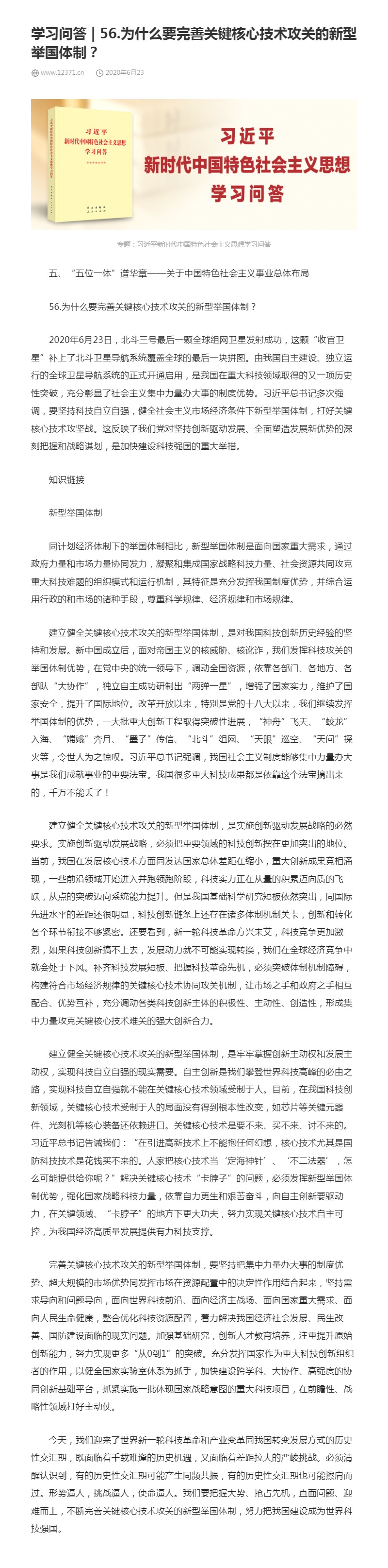 56.为什么要完善关键核心技术攻关的新型举国体制?