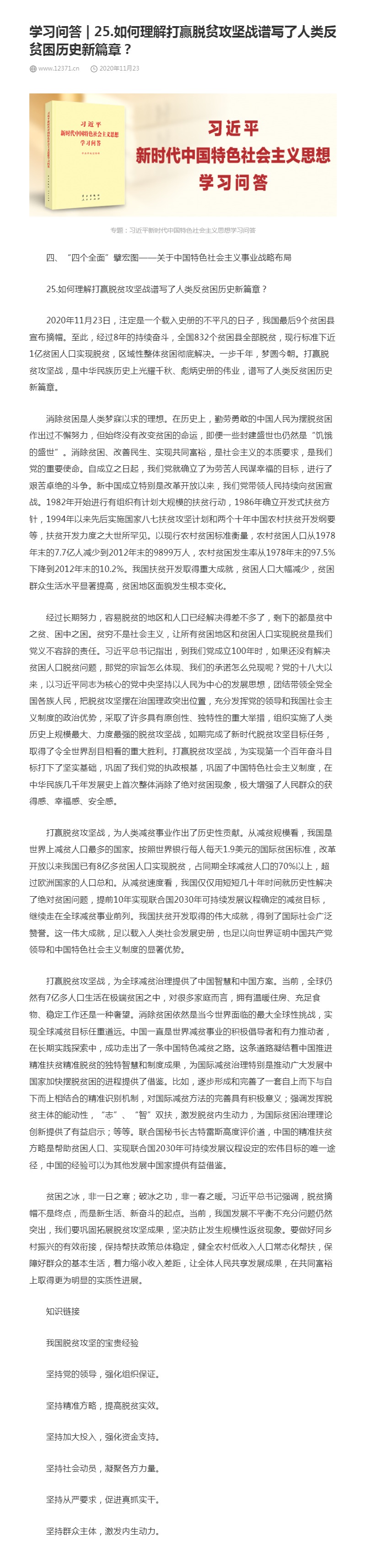 25.如何理解打赢脱贫攻坚战谱写了人类反贫困历史新篇章?